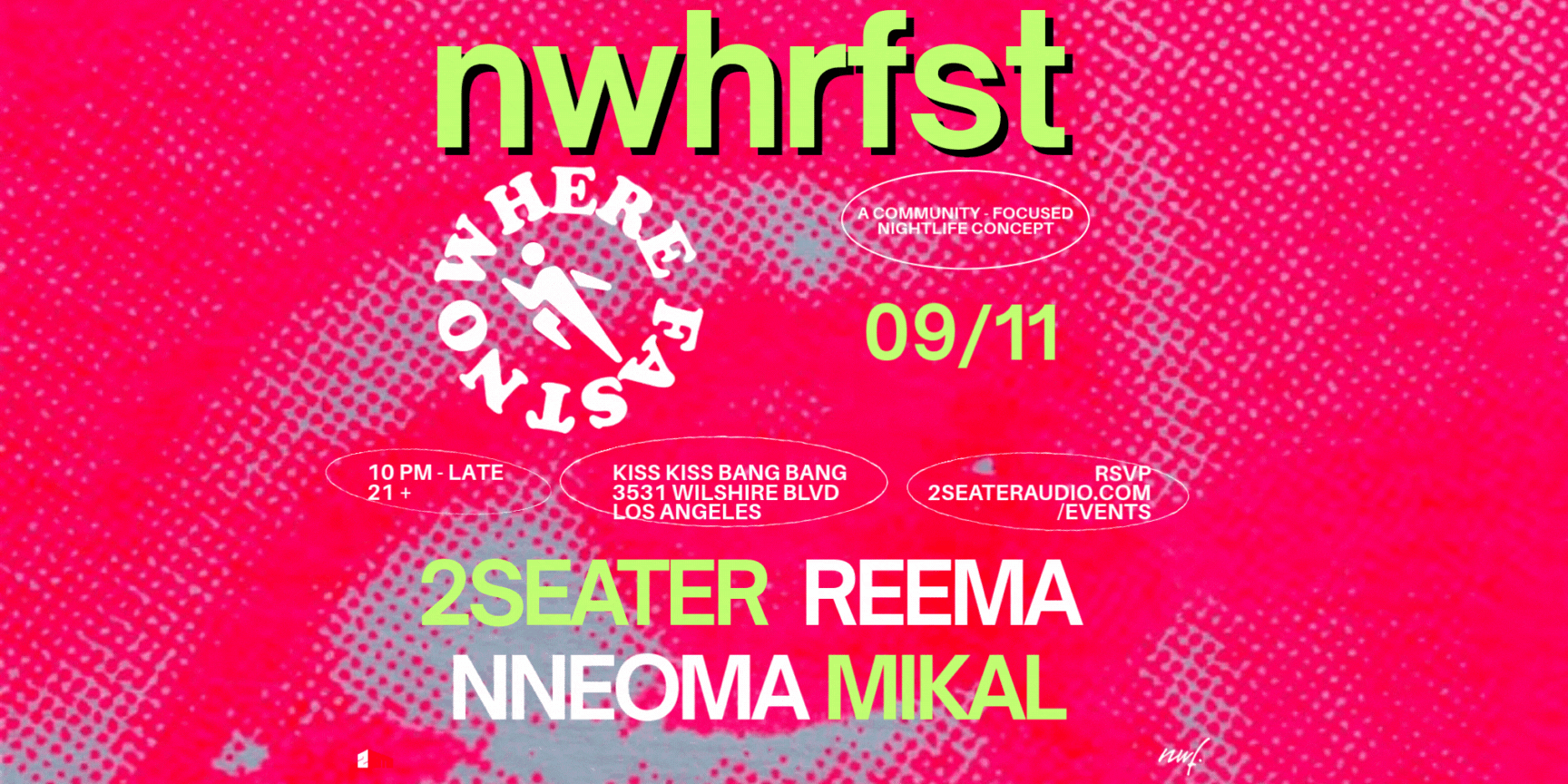 Nowhere Fast returns September 11th with a night dedicated to rhythm and movement. Leaning into house, afro beats, and high-energy dance music, this edition brings together a lineup designed to keep the floor going all night. Sounds by 2SEATER, Nneoma, Reema, and Mikal will guide the night, fostering a community-driven space where music and connection take the lead.